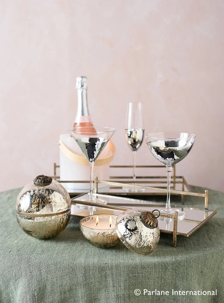 Gorgeous antique silver wax filled votives in the shape of a Bauble, an indulgent gift or simply a beautiful addition to your own home.
