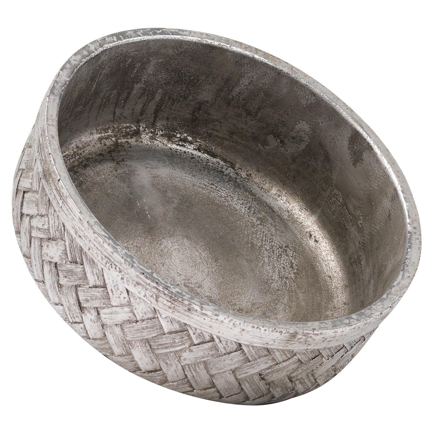 A beautiful ceramic woven basket effect decorative bowl. This bowl will add subtle metallic glamour to any coffee table, sideboard or console table.