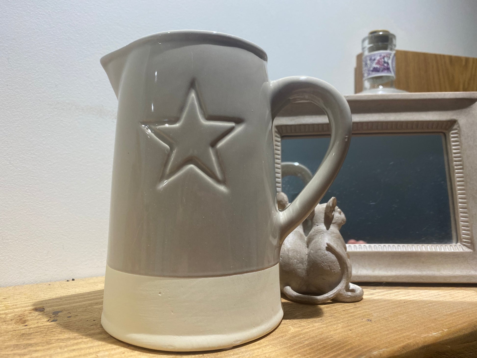 Ceramic Jug embossed with Heart or Star Design On The Front
