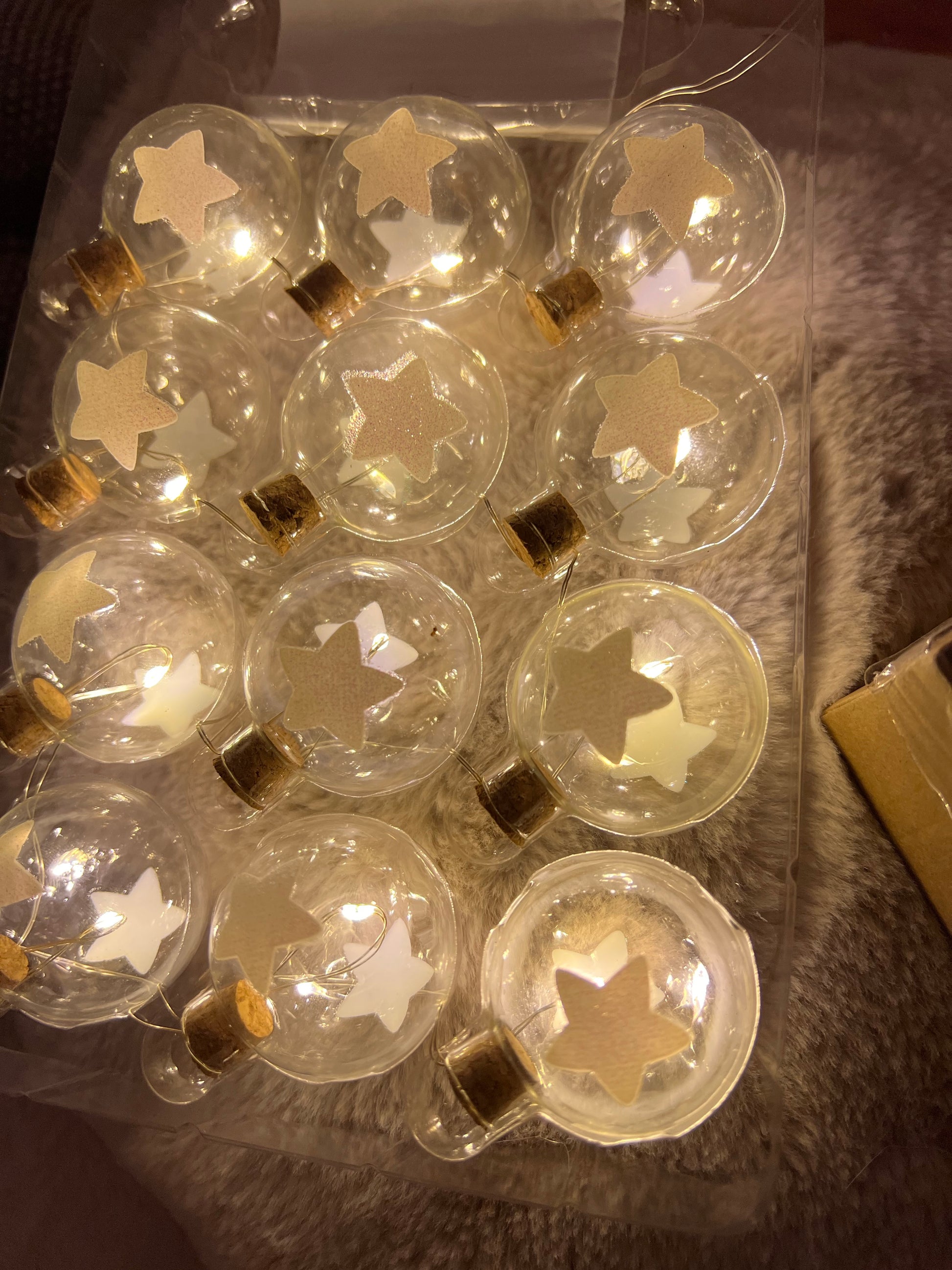 Clear Glass bauble garland lights with etched stars