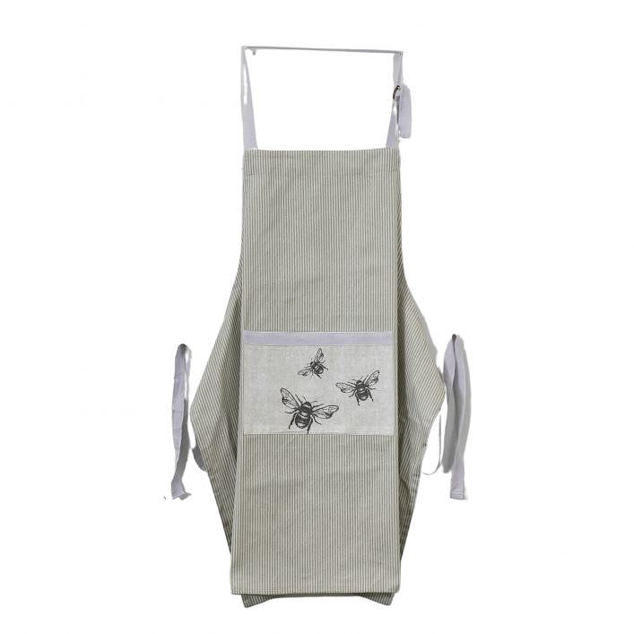 This attractive apron features a chic stripe design on a subtle cream background, with a coordinating vintage bee pattern printed on the handy front pocket. Made from 100% cotton, this stylish apron features a chrome metal fastening and ties and is available in a Eucalyptus